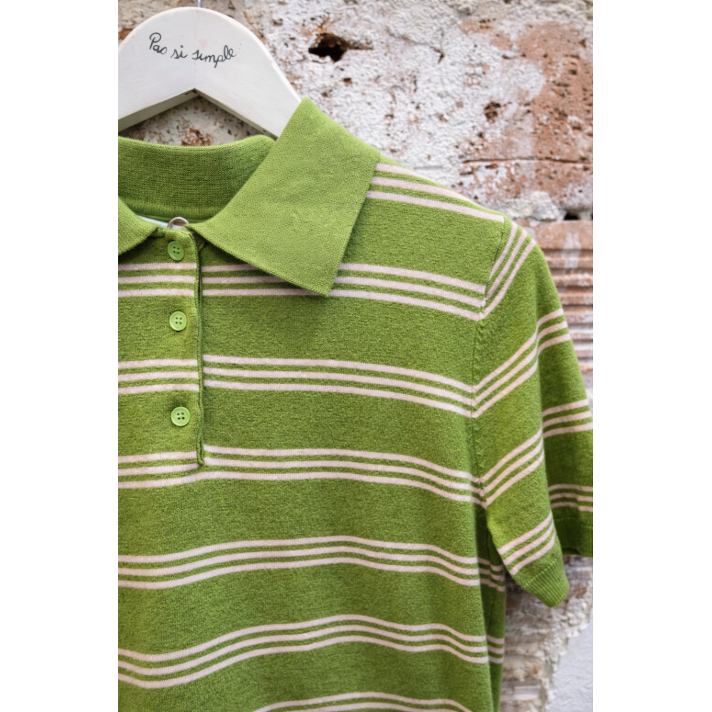 Polo verde con rayas rosa nude.