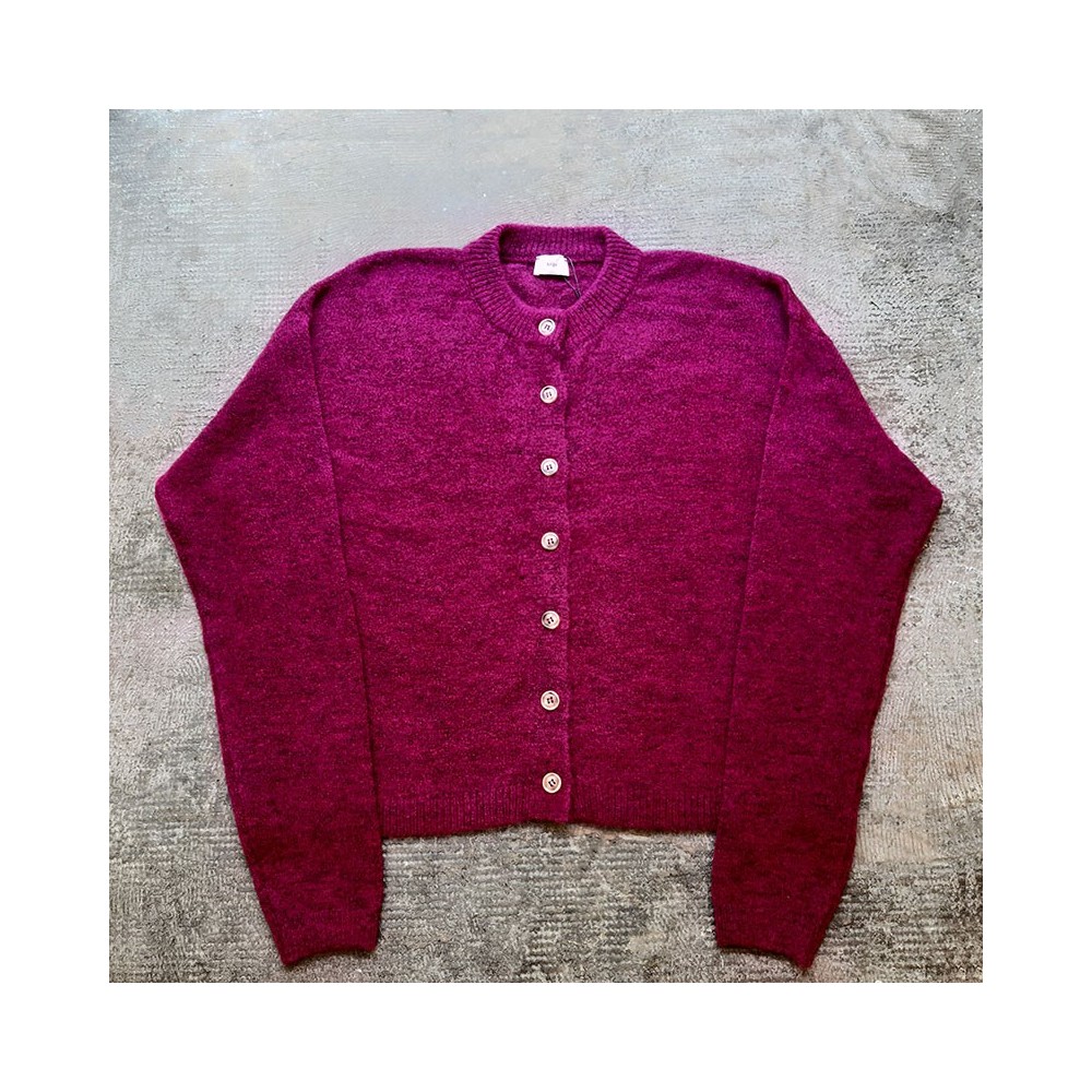 Chaqueta en punto púrpura con manga larga.