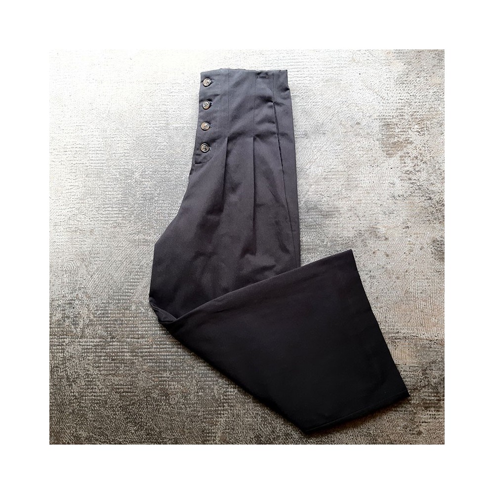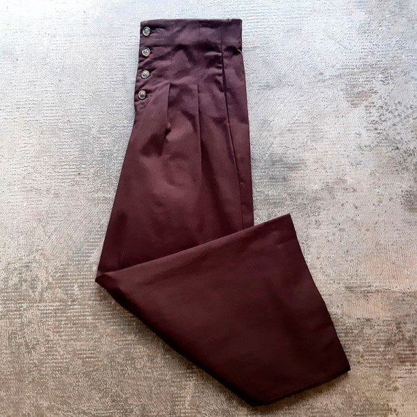 Se cierra con botones, lleva pinzas y bolsillos italianos.